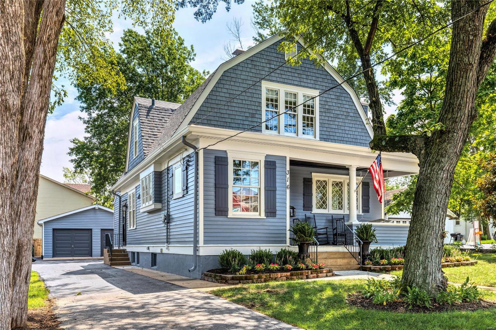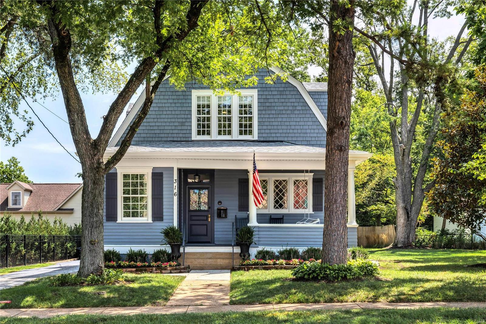 Registered as a Kirkwood Landmark, this picture perfect Dutch Colonial has been extensively renovated throughout while maintaining the charm & character of the original architecture. Well-proportioned rooms feature detailed trim work, custom built-ins & refinished oak hardwoods that extend throughout the main living area. Wide covered front porch leads to oak vestibule & gracious entry foyer, living room highlighted by original brick fireplace, formal dining room with wide bow window & private study. Updated kitchen featuring white cabinetry, granite countertops, stainless steel appliances & 8’ peninsula adjoins light-filled breakfast room. Hardwood floors continue to the 2nd level with a spacious primary bedroom with 3 closets plus 2 additional bedrooms & hall full bath. Grounds include deep backyard with expansive deck—perfect for outdoor entertaining—patio & 2-car garage. Located within walking distance of Walker Park & Historic Downtown Kirkwood’s marketplace & business district.