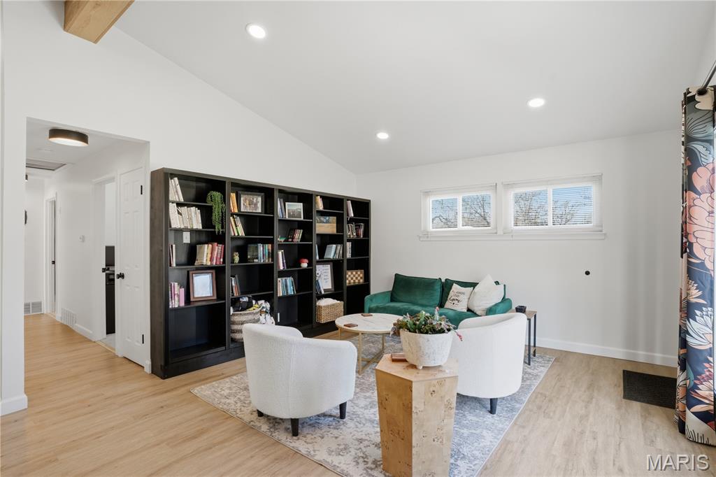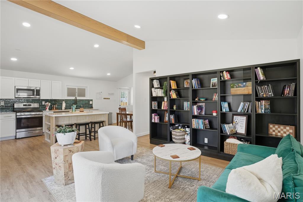 Beautifully renovated ranch in Lindbergh school district now available! Great location near I-44 and Big Bend, you will love this open concept modern home! Walk into the light filled living room with huge front window and high vaulted ceilings with wood beam and recessed lighting. Living room opens to gorgeous kitchen featuring huge island, quartz counters, subway tile backsplash and stainless appliances including refrigerator and gas range. 3 bedrooms on the main level and updated bathroom, the largest bedroom with painted brick accent wall adding to the overall character of this amazing home. Finished lower level offers huge rec room with plenty of space to relax or entertain. More outstanding features include luxury vinyl plank floors, large storage room in basement, double width driveway, fenced yard, carport with side entrance to kitchen and oversized patio perfect for entertaining. This is one you don’t want to miss!